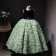 This girls' dress features a dreamy design and delicate details. The overall soft pink color tone is adorned with sparkling stripes and a fluffy feathered hemline, creating a fairy-like feel. The back is finished with a large bow in the same color, adding an air of elegance and cuteness. This gown is offered in a variety of color options to meet different style needs.