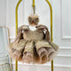 This one is soft, with delicate braids and sequin embellishments, giving it a fairy-tale charm. It adds a touch of contrast, and the large bow at the waist adds another highlight. The fluffy skirt gives the little girl a dreamy feeling.