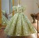 This luxurious girl's gown is crafted with exquisite design and high-quality fabric, available in multiple colors to suit different occasions. The upper layer is made of lightweight tulle, adorned with delicate embroidery and sparkling sequins, creating a dreamy effect. The wide skirt is elegant and generous, featuring layered ruffles and lace designs, perfectly showcasing a princess-like temperament.