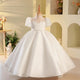 This girls' gown is made from luxurious tiers of tulle, each layer embellished with subtle sparkles that look like stars. The upper body is decorated with exquisite hand-embroidered floral patterns and diamonds, showing nobility and elegance. The soft puff sleeve design adds a sense of three-dimensionality and fantasy, and the overall shape is like a princess walking out of a fairy tale.
