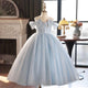 This girls' dress features a dreamy design and delicate details. The overall soft pink color tone is adorned with sparkling stripes and a fluffy feathered hemline, creating a fairy-like feel. The back is finished with a large bow in the same color, adding an air of elegance and cuteness. This gown is offered in a variety of color options to meet different style needs.