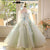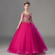 This girls' gown is made from luxurious tiers of tulle, each layer embellished with subtle sparkles that look like stars. The upper body is decorated with exquisite hand-embroidered floral patterns and diamonds, showing nobility and elegance. The soft puff sleeve design adds a sense of three-dimensionality and fantasy, and the overall shape is like a princess walking out of a fairy tale.