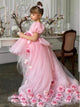 This girl's dress is primarily in a fresh and elegant green, adorned with exquisite three-dimensional floral decorations, resembling a spring garden. The multi-layered tulle design adds a dreamy touch, making it the perfect realization of a princess dream.