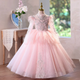This girls' gown is made from luxurious tiers of tulle, each layer embellished with subtle sparkles that look like stars. The upper body is decorated with exquisite hand-embroidered floral patterns and diamonds, showing nobility and elegance. The soft puff sleeve design adds a sense of three-dimensionality and fantasy, and the overall shape is like a princess walking out of a fairy tale.