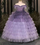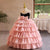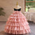 This girls' gown is made from luxurious tiers of tulle, each layer embellished with subtle sparkles that look like stars. The upper body is decorated with exquisite hand-embroidered floral patterns and diamonds, showing nobility and elegance. The soft puff sleeve design adds a sense of three-dimensionality and fantasy, and the overall shape is like a princess walking out of a fairy tale.
