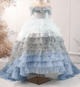 This girls' gown is made from luxurious tiers of tulle, each layer embellished with subtle sparkles that look like stars. The upper body is decorated with exquisite hand-embroidered floral patterns and diamonds, showing nobility and elegance. The soft puff sleeve design adds a sense of three-dimensionality and fantasy, and the overall shape is like a princess walking out of a fairy tale.