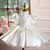 This one is soft, with delicate braids and sequin embellishments, giving it a fairy-tale charm. It adds a touch of contrast, and the large bow at the waist adds another highlight. The fluffy skirt gives the little girl a dreamy feeling.