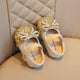 These children's shoes combine elegance and fashion, crafted from high-quality materials. The upper is adorned with sparkling crystal decorations and a soft pink bow, offering a dreamy princess-like feel. The strap is also embellished with glittering details, providing both aesthetics and functionality to keep the shoe securely in place. The crystal embellishments on the toe add a brilliant visual appeal, highlighting the shoe's unique style, perfect for various occasions.