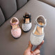 These adorable little girl's princess shoes come in multiple color options, including classic black, white, pink, and more, adorned with sparkling sequin bows. The shoes feature pearl embellishments on the straps, adding a touch of elegance and luxury. The overall style is sweet and dreamy, perfect for everyday wear or special occasions for little princesses. Comfortable to wear and ideal for pairing with dresses, these shoes showcase a child's innocence and playful charm.