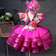 This girls' dress features a dreamy design and delicate details. The overall soft pink color tone is adorned with sparkling stripes and a fluffy feathered hemline, creating a fairy-like feel. The back is finished with a large bow in the same color, adding an air of elegance and cuteness. This gown is offered in a variety of color options to meet different style needs.