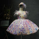 This girls' dress features a dreamy design and delicate details. The overall soft pink color tone is adorned with sparkling stripes and a fluffy feathered hemline, creating a fairy-like feel. The back is finished with a large bow in the same color, adding an air of elegance and cuteness. This gown is offered in a variety of color options to meet different style needs.