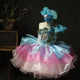 This luxurious girls' dress features a dreamy green hue, layered organza fabric that creates a voluminous and textured skirt, and is adorned with sequins and intricate embroidery to perfectly showcase elegance and nobility. The unique shawl design combined with an oversized bow adds dimension and theatrical charm, making it suitable for grand occasions.