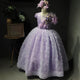 This girls' dress features a dreamy design and delicate details. The overall soft pink color tone is adorned with sparkling stripes and a fluffy feathered hemline, creating a fairy-like feel. The back is finished with a large bow in the same color, adding an air of elegance and cuteness. This gown is offered in a variety of color options to meet different style needs.