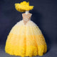 This is a high-end dress designed for girls, featuring romantic rose embroidery and shimmering sequins that exude elegance and charm. The classic and playful puff skirt silhouette suits various occasions and comes in multiple colors, allowing