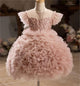 This one is soft, with delicate braids and sequin embellishments, giving it a fairy-tale charm. It adds a touch of contrast, and the large bow at the waist adds another highlight. The fluffy skirt gives the little girl a dreamy feeling.
