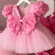 Baby dress birthday party rose puff sleeve mesh girls evening dress