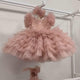 This exquisite princess dress features a luxurious sequined design, with a layered tulle skirt adding a dreamy vibe. The three-dimensional floral embellishments on the shoulders enhance the elegance and sweetness, making it suitable for various occasions. Available in multiple colors, each option highlights a unique princess style.