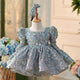 This is a beautifully designed girls' dress, exuding elegance and a princess-like dreaminess. The outer layer of the dress is made of sparkling sequins and light tulle, creating a fairy-like effect. The dress features a wide skirt and puff sleeves, adding volume and grandeur to the overall design. This dress is available in various colors to suit different preferences and occasions.