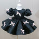 This one is soft, with delicate braids and sequin embellishments, giving it a fairy-tale charm. It adds a touch of contrast, and the large bow at the waist adds another highlight. The fluffy skirt gives the little girl a dreamy feeling.
