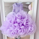 This dreamy lilac dress is like a fairy descending to earth, making it the dream choice for every little princess. Delicate embroidered flowers adorn the tulle, as if walking through a sea of flowers. The fluffy skirt design makes every step a magical fairy tale. Whether attending a birthday party or an important family gathering, this dress will make your little girl the center of attention.
