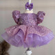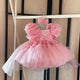 1-year-old baby birthday party puff sleeve butterfly fluffy V-neck girl princess dress