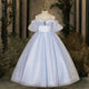 This one is soft, with delicate braids and sequin embellishments, giving it a fairy-tale charm. It adds a touch of contrast, and the large bow at the waist adds another highlight. The fluffy skirt gives the little girl a dreamy feeling.